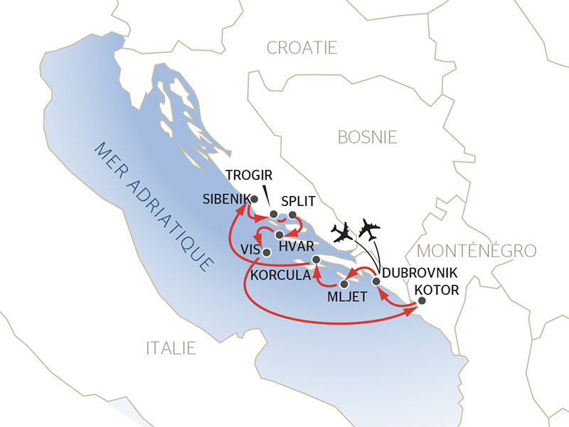 Beauté des paysages et escales uniques, vivez un voyage époustouflant en Croatie et au Monténégro, tout au long duquel vous découvrirez des villes ravissantes ainsi que des lieux où la nature est reine. Plongez au coeur de la côte dalmate qui vous offrira un spectacle d'une beauté saisissante. Promenez-vous au sein de Dubrovnik "perle de l'Adriatique