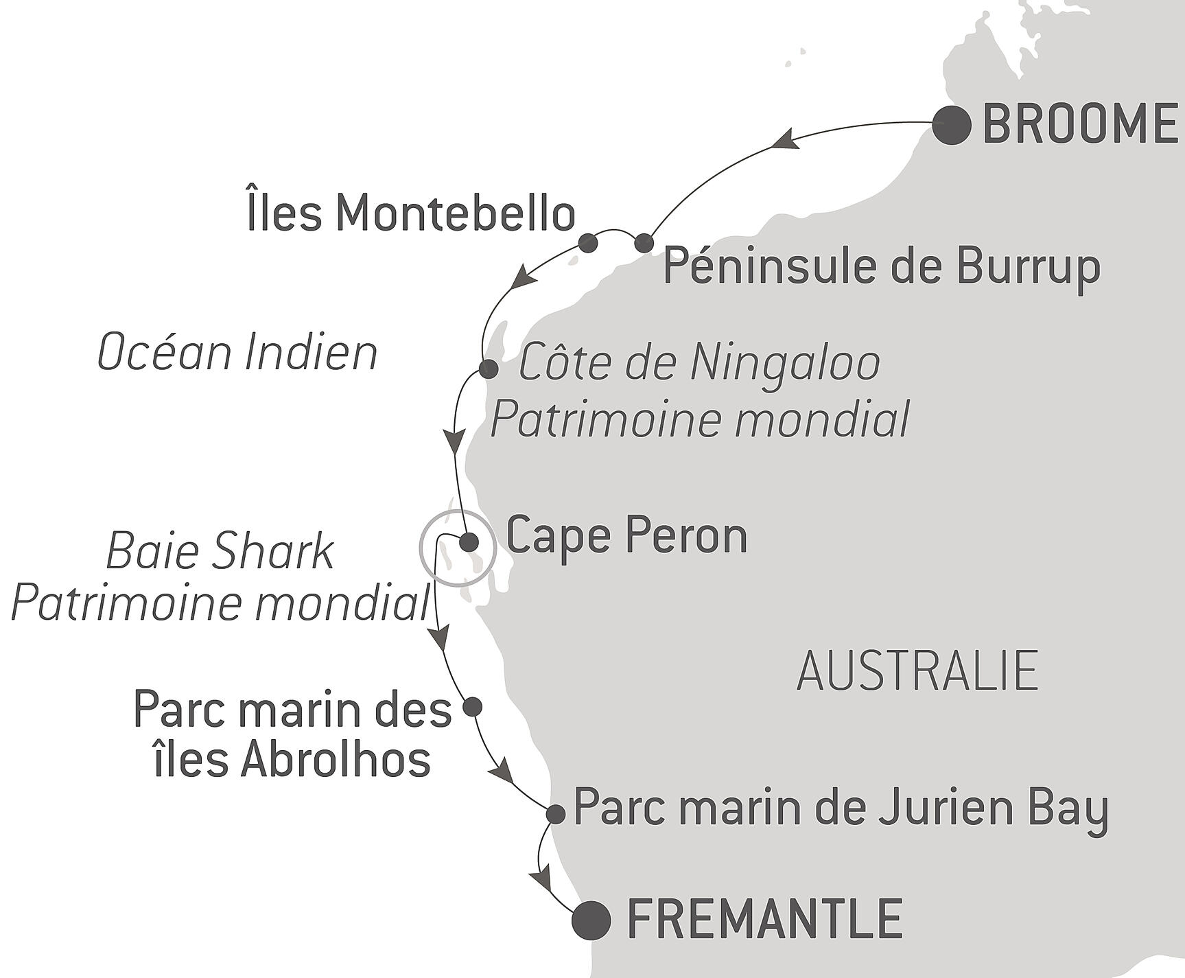 Explorez la côte ouest de lAustralie lors dune croisière dexpédition de 11 jours à bord du Soléal. Plages immaculées bordées deaux turquoise, paysages majestueux classés au patrimoine mondial de lUnesco, rencontres avec la vie marine et découverte de la mystérieuse histoire de la région, laissez-vous surprendre par un voyage inoubliable.