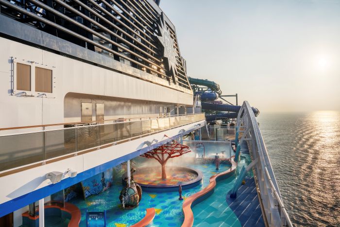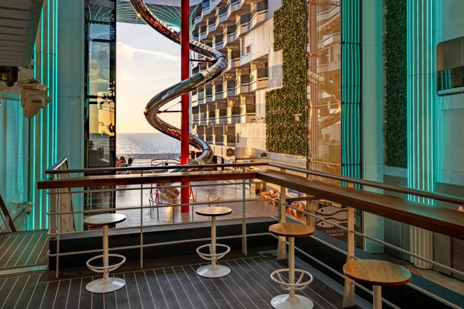 Son arrière ouvert en forme de Y mène à une promenade de 104 mètres de long, avec des vues panoramiques incroyables sur l'océan. La promenade comprend également le record du plus long toboggan sec en mer - le Venom Drop @ The Spiral - un chef-d'œuvre en acier inoxydable de 11 ponts, unique dans le secteur des croisières.