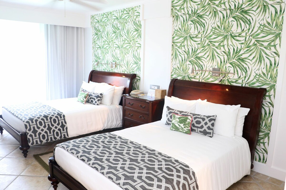 Cette chambre offre une vue au dessus de la piscine de style oasis du Coco Palm’s ou sur les jardins exotiques et luxuriants. Situé au 4eme étage avec un accès en ascenseur, la grande chambre dispose lit king size, de 2 salles de bains et d’une seconde chambre avec canapé-lit. Elle est équipée de 2 téléviseurs, un téléphone sans fil, un coffre fort, table et fer à repasser et un petit réfrigérateur.
