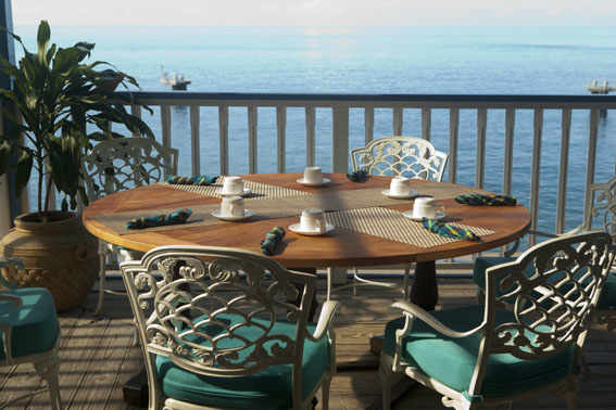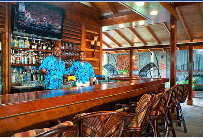 L'hôtel dispose de 2 restaurants et 2 bars : "Waterfront Restaurant" avec salle principale entièrement climatisée et terrasse ouverte pour le déjeuner et le dîner. "Marquis de Bouile" propose à ses clients une cuisine créole et internationale. "Balas Lounge Bar" est situé au bord de la piscine et propose cocktails et punchs en tout genre. "Boardwalk Café" surplombe la mer et sert une grande variété de boissons tropicales et snacks divers.