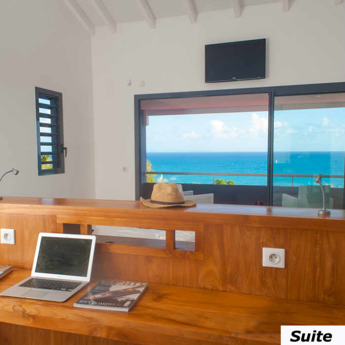 32 bungalows privatifs au décor raffiné et 12 somptueuses Suites nichés au cœur d'un jardin tropical parsemé de bougainvilliers et d'hibiscus surplombant la mer des Caraïbes.