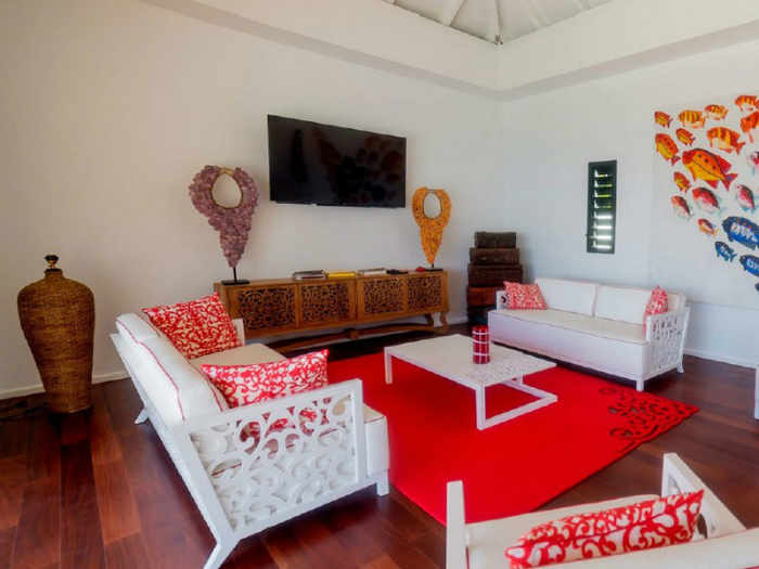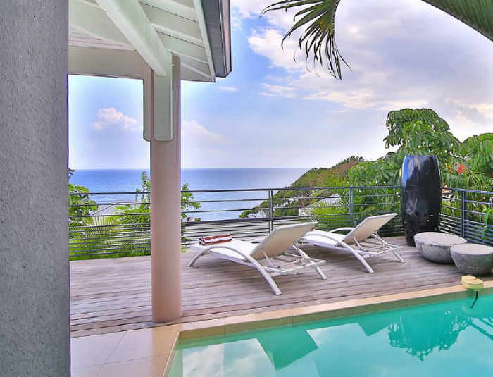 Le mobilier de style colonial fait de la villa un endroit d'antan où il fait bon profiter des Alizés. Son salon ouvert sur la terrasse domine la mer. La cuisine à l'américaine totalement équipée vous permettra de savourer les saveurs des îles.