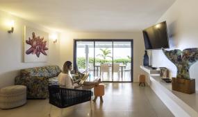 Située sur les hauteurs et entourée d'un jardin tropical, la villa URA bénéficie d'une vue époustouflante.