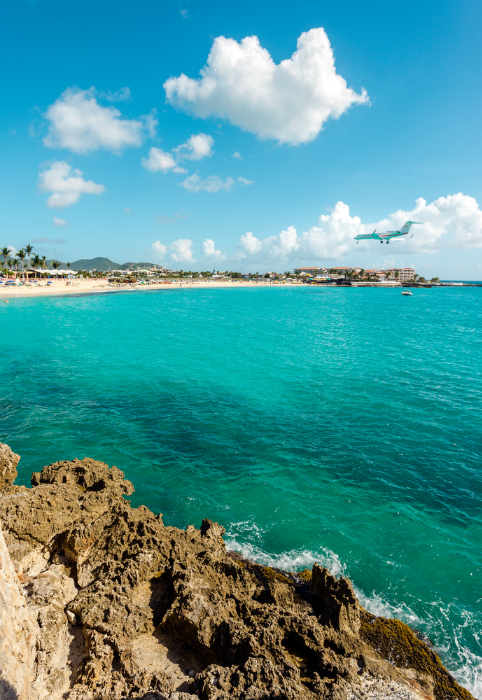 MAHO PLAGE. En plus du sable blanc et de l'eau cristalline, la plage de Maho Beach est également l'endroit ultime pour observer l’atterrissage d’avions.